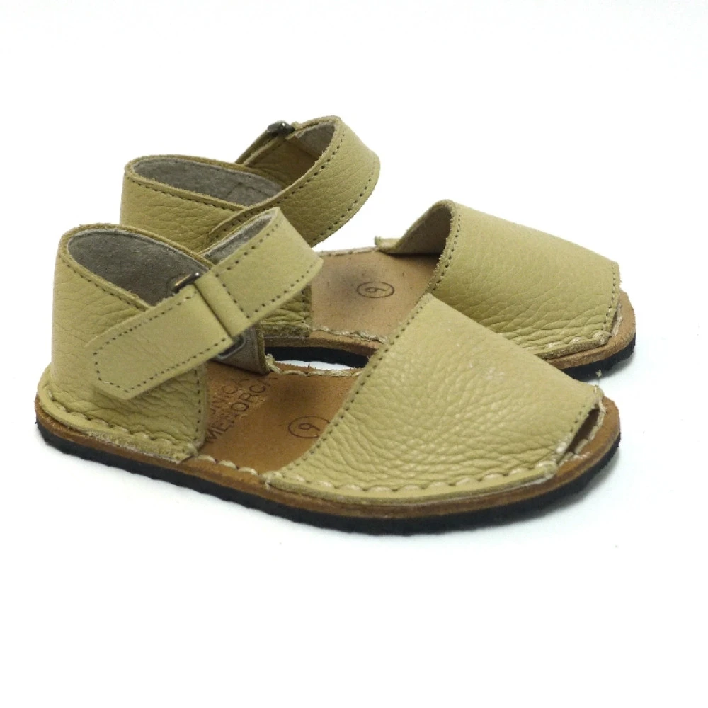 Menorquina de niño con talón cerrado, cierre de velcro al tobillo para una mayor sujeción. Están fabricadas en piel napa, metalizada, charol o con glitter. Forros de piel y planta de cuero. Piso en goma rally con tapa.
