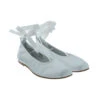 Bailarinas de niña tipo ‘lace up’ atadas al tobillo con acabado de pompones. Piel de nobuck adornadas con estrellas metalizadas. Forros y planta en piel. Suela de goma antideslizante.