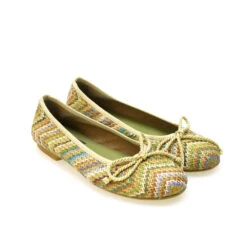 Bailarina hecha en rafia multicolor con lazo de adorno. Plata de piel. Suela de crepe flexible y antideslizante.