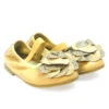 Bailarina para vestir y ceremonia para niña en napa y en piel metalizada con elástico alrededor del tobillo para mayor sujeción. Lleva en la pala de adorno una coca cubierta de strass. Forros y planta en piel. Suela de goma antideslizante.