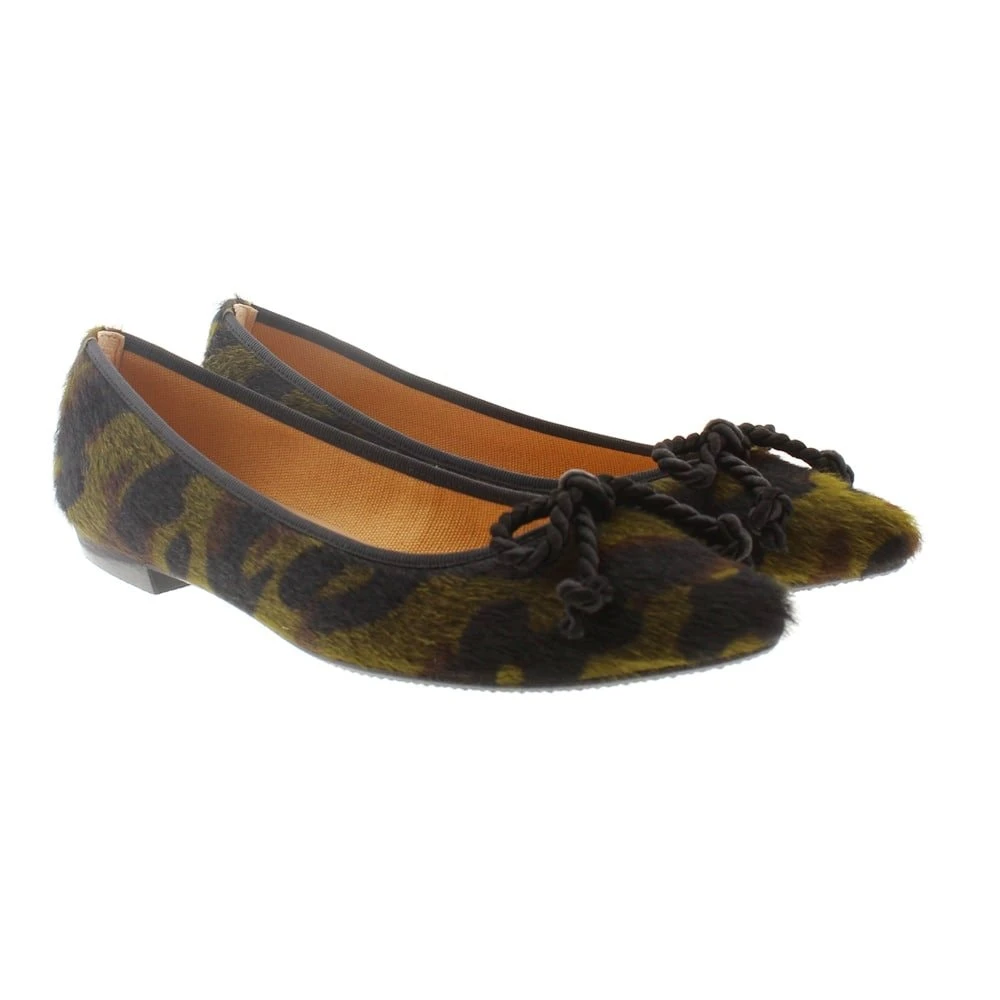 Piel de pony con print de camuflaje en tonos verdes. Consejos de talla: Calzan el número. Dale color a tus outfits de invierno con estas bailarinas estampadas y combínalas con vestidos o monos negros.