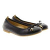 Bailarina de vestir y comunión cubierta con purpurina de UNISA con adorno de un lazo en la pala y vivos de grogen. Forros y planta en piel. Suela de goma antideslizante.