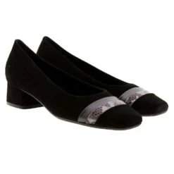 Piel de nobuck negro. Consejos de talla: Calzan el número. Este invierno vestiremos nuestros pies con estos zapatos con tacón bajo para ir cómodas y estilosas para vestir. Es el zapato ideal para ir a la oficina o para vestir el fin de semana, llevando un poco de altura para ir más cómoda.