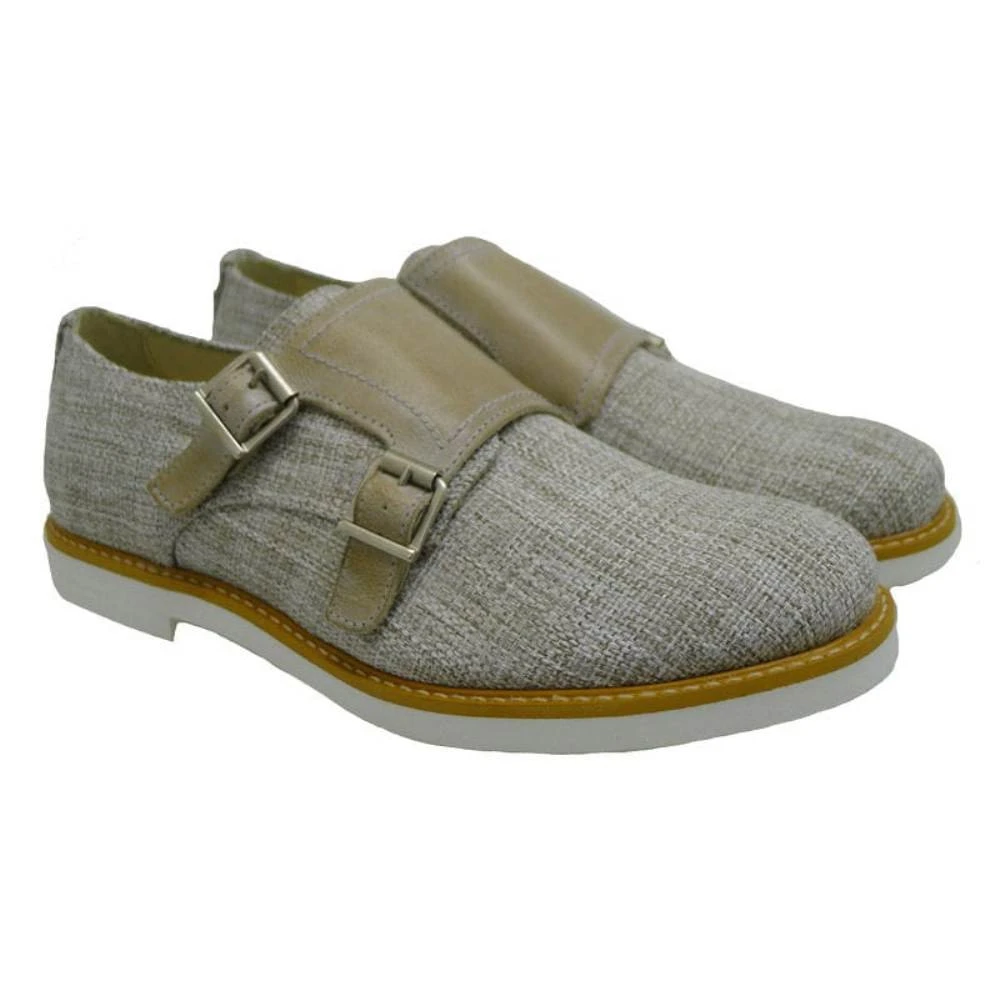 Zapato de lino para comunión de niño de Oca Loca con cierre de hebillas y empeine en napa. Forros y planta en piel. Suela de goma antideslizante.