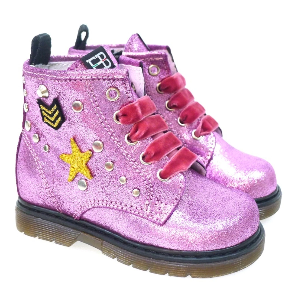 Piel metalizada fuxia. Consejos de talla: Calzan el número. Una bota para niña muy cañera para faldas y leggins. EB es una marca italiana, de alta calidad con el uso de los mejores materiales. Una marca reconocida en el mundo de la moda.