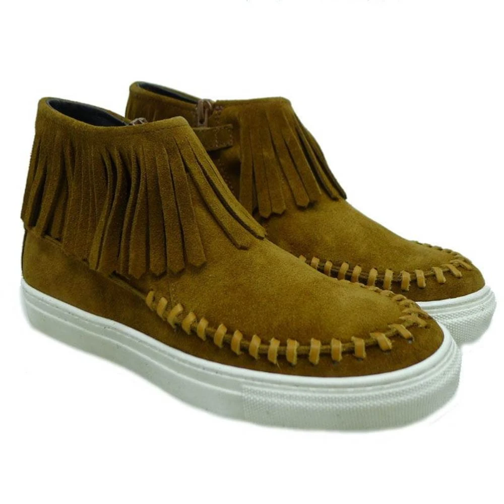 Bota deportiva para niña y joven de CLIC en piel de nobuck. Cierre de cremallera lateral, con flecos en la caña y pespuntes decorativos. Forros y planta en piel. Suela de goma antideslizante.