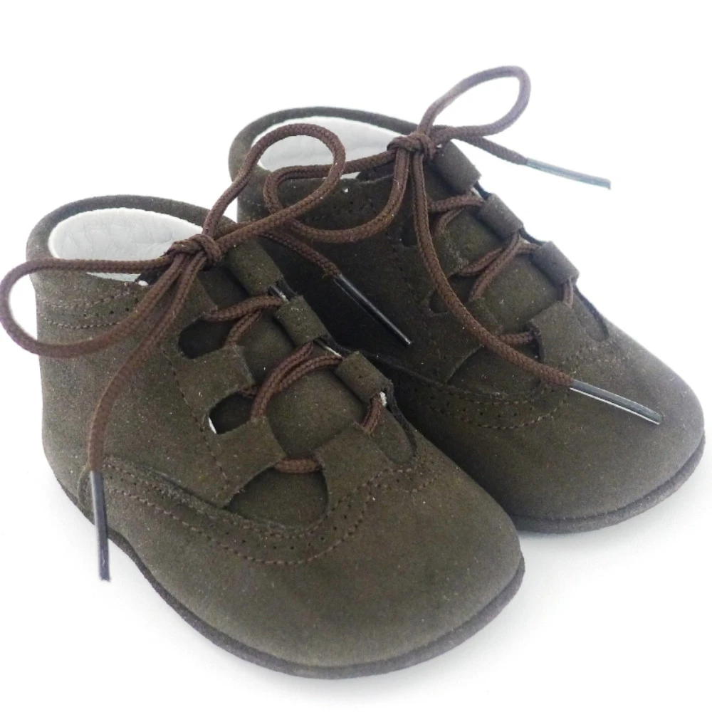 Disponible en diferentes colores, piel nobuck hidrofugado color marrón chocolate, color taupe, color gris, color rojo y color burdeos.Consejos de talla: calzan el número, para zapato sin suela se recomienda no coger el número muy justo. Las botas inglesitas son unisex y están disponibles en diferentes colores para combinar con sus abrigos y ranitas en invierno. Estas badanas son un complemento de abrigo para el recién nacido, sobre todo para los conjuntos más vestidos por su estilo clásico, aunque también se pueden llevar con ropa más informal como pantalones y jerseys.