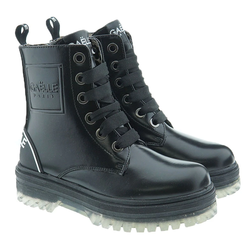 Las niñas irán a juego con mamá con estos botines de estilo militar de la marca GALLE. Para mayor comodidad para que ellas solas se los puedan poner y quitar, llevan cierre de cremallera en el lateral, a parte de los cordones. Van decoradas con el logo de la marca en la caña y en el talón. La suela es de goma antideslizante.