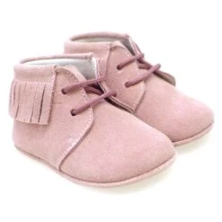 Disponible en diferentes colores, piel nobuck taupe y piel nobuck rosa. Consejos de talla: Calzan el número, pero en zapato sin suela se aconseja no cogerlo muy justo. Estas botas no son tan clásicas como las galesas, sino que tienen un toque más actual gracias a los flecos, tipo safari, para combinarlas con vestidos más informales o pichis. Estos zapatos tan blanditos y suaves son el mejor complemento de abrigo para tu bebé recién nacido.