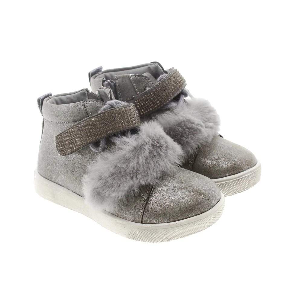 Piel metalizada gris. Consejos de talla: Calzan el número. Si buscas un calzado deportivo para vestir los pies de tu pequeña este invierno para la guardería o para el colegio, elige estas botas que le combinarán con unas mallas como con un vestido de punto.