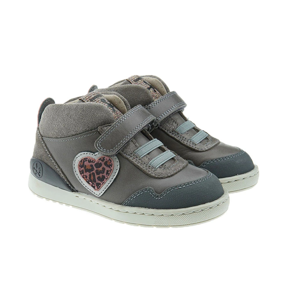 Piel napa gris. Consejos de talla: Calzan el número. Estas botas están pensadas para llevar con vaqueros, mallas o vestidos de sport para diario para el colegio. Con ellas irán muy bien calzadas ya que tienen horma de zapato pero estética de zapatilla.