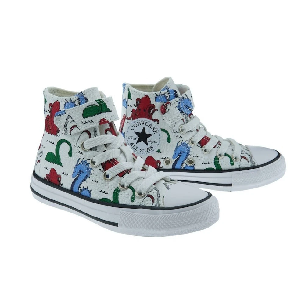 Las botitas más divertidas y originales de la temporada para los más pequeños las firma CONVERSE. Este diseño de algodón con animales lleva cierre de velcro con cordones elásticos que a tu hijo le encantará. La suela es de caucho antideslizante.
