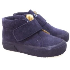 SUPERGA cuenta con botas para niño en serraje con cierre de velcro. Van forradas en piel con la suela de caucho natural antideslizante.