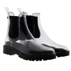 Color transparente. Consejos de talla: Calzan el número. Estos botines los llevaremos con calcetines de fantasía con estampados y dibujos para que sea vean tras el botín. Con ellos llevaremos el pie bien protegido de la lluvia ya que proporcionan total transpirabilidad ya que están inyectados en una sola pieza.