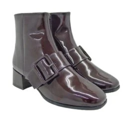 Piel de charol burdeos. Consejos de talla: Calzan el número. Para llevar de diario para caminar mucho, estos botines son muy cómodos por la altura de tacón y nos estilizarán la figura al no ser totalmente planos.