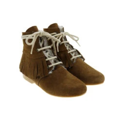Los botines tobilleros son los más cómodos para las niñas para vestir. Este diseño es como un blucher con caña, en piel de nobuck y con adorno de flecos en la parte del talón. Van forrados de pelito y tienen cierre de cordón para mayor agarre. Las suelas son antideslizantes.