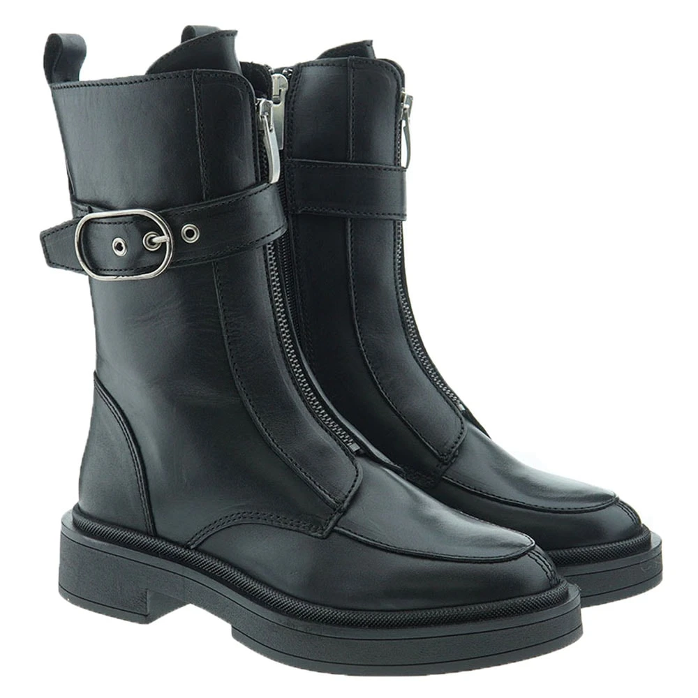 Este invierno las botas militares son lo más y las de VEXED no pueden faltar en nuestro armario. Estas botas están fabricadas en piel y llevan de adorno una cremallera en el frontal con una hebilla. El cierre de cremallera es el del lateral interior. La suela es de goma antideslizante.