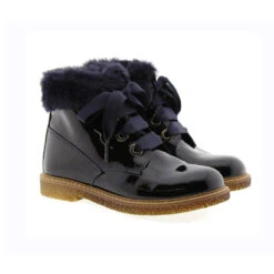 Disponible en diferentes colores, piel de charol azul, piel de charol gris y piel de charol rosa. Consejos de talla: Calzan el número. Los botines acordonados sujetan muy bien el pie ya que se adaptan a la anchura fácilmente y a la hora de combinarlos con perfectos para unos pantalones o para una falda.