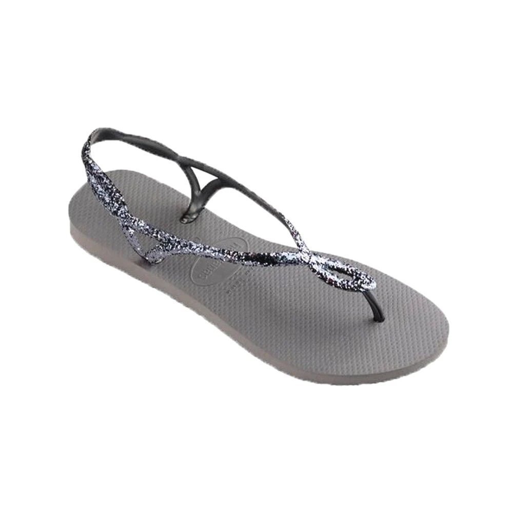 Con tira en el talón para mayor agarre, estas chanclas de HAVAIANAS son como una sandalia, con tira entre los dedos y forma de lune en el empeine. Están cubiertas de purpurina para darle un toque más vestido a nuestros looks playeros. La planta superior tiene motivos de grano de arroz y la suela es muy ligera y antideslizante.