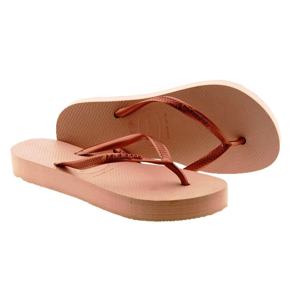 La gran tendencia de las plataformas ha llegado a las chanclas de piscina de la marca HAVAIANAS. Este modelo slim es de tira fina y lleva el logo de la marca en una de las tiras. La altura de la plataforma es de 2,5 cm aproximadamente.