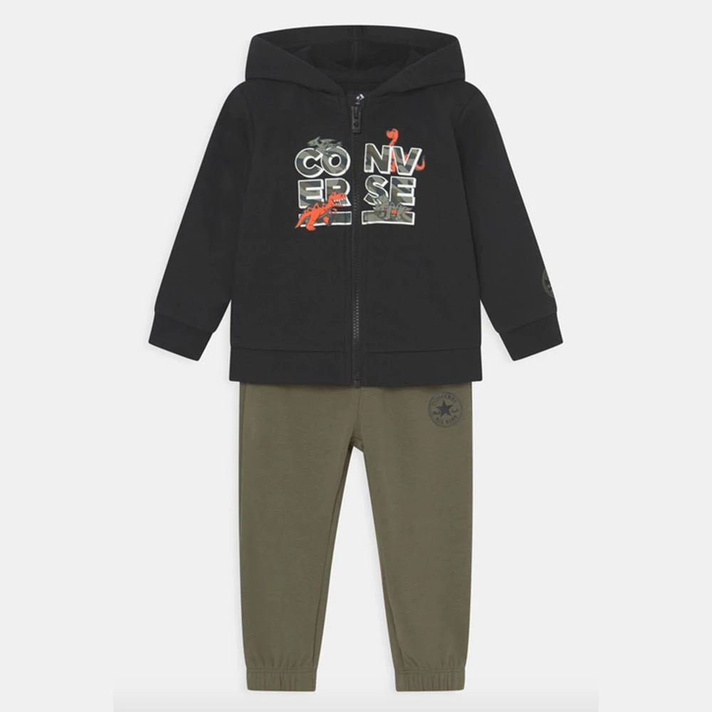 Este invierno los chándals de CONVERSE más divertidos para los niños son los de la colección de dinosaurios. Este chándal está hecho de algodón y lleva sudadera con cremallera y capucha y pantalón. Están decorados con el logo de la marca y con dinosaurios.