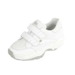 La marca especializada en calzado ortopédico MENDIVIL cuenta en este catálogo con estas deportivas blancas de piel con cierre de velcro. Esta zapatilla es de horma rectaforma con gran capacidad interior para acoplar plantilla y con contrafuertes armados para dar estabilidad al pie, además de adaptarse a la forma del tendón. El piso es de poliuretano.