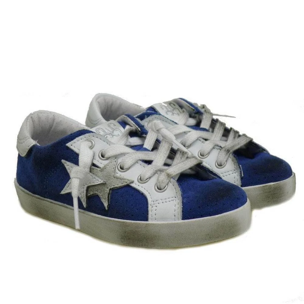 Disponibles en dos colores, en piel napa blanca con lentejuelas azules y platas, en piel blanca con adornos en rosa y en piel de nobuck azul con estrellas en blanco. Consejos de talla: Calzan el número. Una zapatilla con efecto desgastado en los cordones y en la suela, ideal para llevar con un look actual con vaqueros y pitillos. Además tienen la gran ventaja de no tener que atar y desatar los cordones porque son fijos.