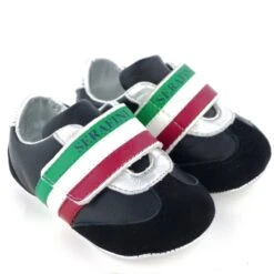 Cierre velcro con la bandera de Italia. Disponbile en diferentes colores, base en negro y planta en plata y base en rosa y planta en napa blanco.Consejos de talla: calzan el número, para zapato sin suela se recomienda no coger el número muy justo.Badana deportiva de la marca Serafini, de origen italiano, ideal para combinar con sus conjuntos de sport y chándal.