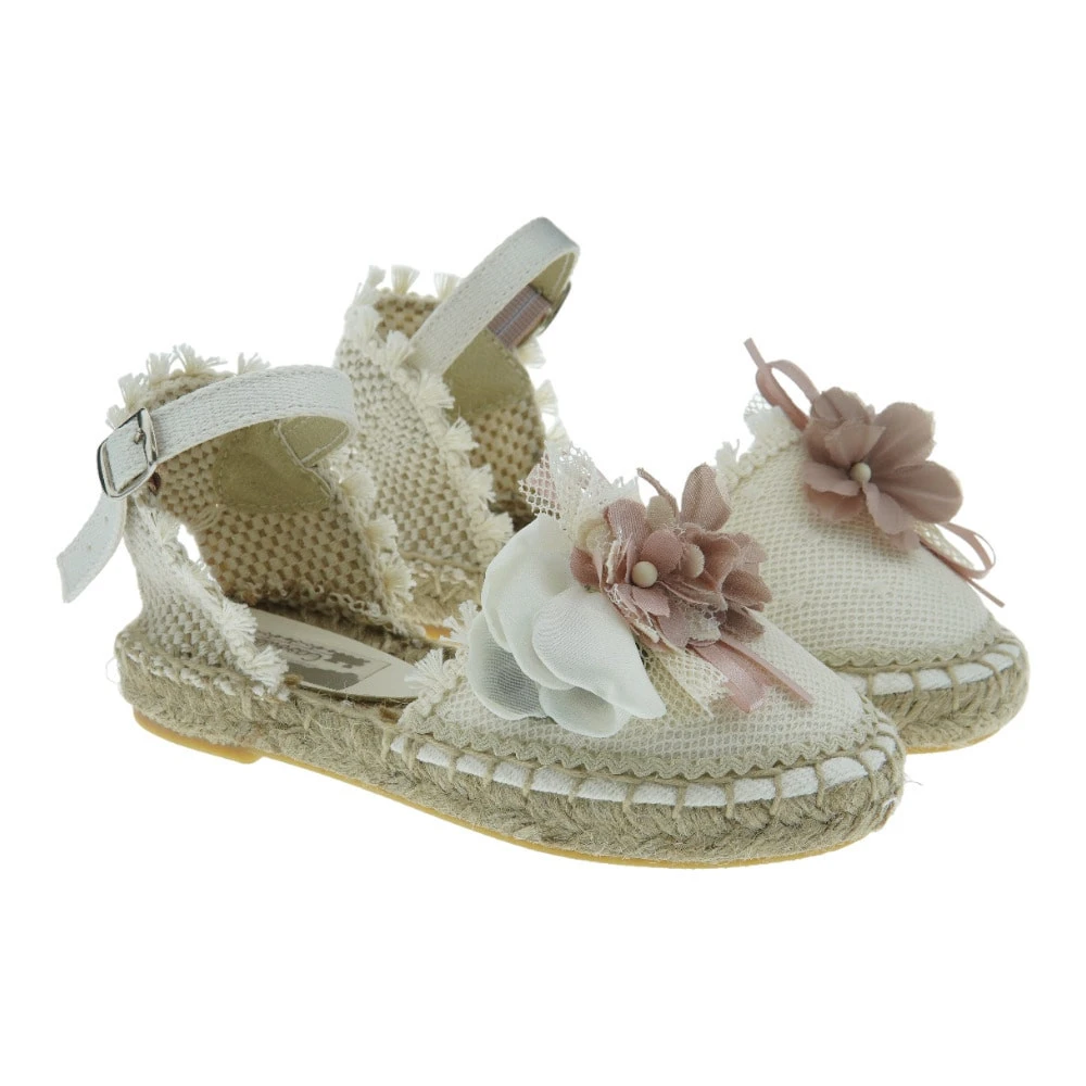 Color beig y rosa. Consejos de talla: Calzan el número. Las alpargatas están más de moda que nunca para acompañar a los vestidos de comunión.