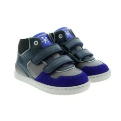 Piel napa azul con gris. Consejos de talla: Calzan el número. Estas botas las llevarán los peques este invierno al colegio ya sea con un chándal, un pantalón de algodón o un tejano. Son muy cómodas y sobre todo fáciles de poner y quitar.