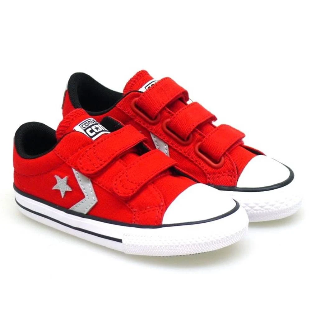 En cuanto empiece a llegar el buen tiempo, las deportivas las sustituiremos por las zapatillas de lona para niños. La zapatilla Star Player de CONVERSE es un icono de la marca, que todos los años en primavera vuelve. Este modelo se caracteriza por llevar una entrella en los laterales, además de la típica puntera de goma y cierres de velcro. Las suelas son de caucho antideslizante.