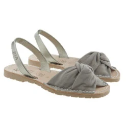 Piel de nobuck taupe. Consejos de talla: Calzan el número. Estas abarcas tan cómodas y suaves, las llevaremos niñas y mamás a juego este verano a diario. Las menorquinas son el mejor complemento para alternar con las sandalias y combinarlas con diferentes looks.
