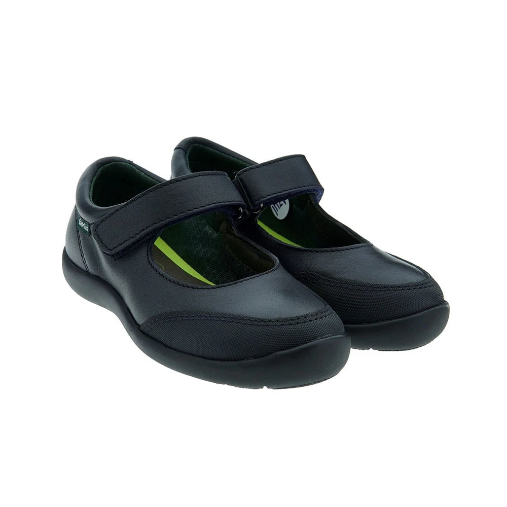 Las merceditas colegiales más resistentes son las que tienen refuerzo de goma en la puntera como este modelo de la marca GORILA. Están fabricadas en piel con cierre de velcro para mayor agarre y sujeción y el interior de piel con la plantilla anatómica extraible. Las suelas son de goma antideslizante y resistentes.