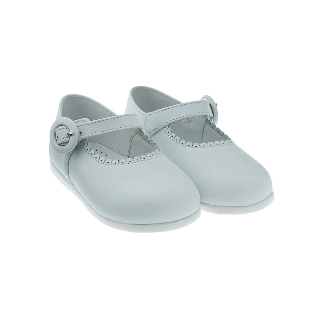 Piel napa blanco.Consejos de talla: Calzan el número. Las merceditas protegerán los pies de las más pequeñas gracias a la sujeción que proporcionan en el empeine. Combínalas con vestidos tanto para diario como para ocasiones más especiales.