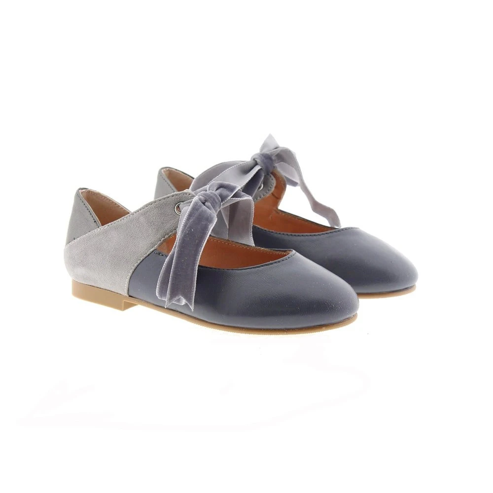 Estas merceditas tan originales, tienen la forma de una bailarina en napa y en nobuck, atada en el empeine con una lazada de terciopelo. El interior también es de piel transpirable y la suela antideslizante.