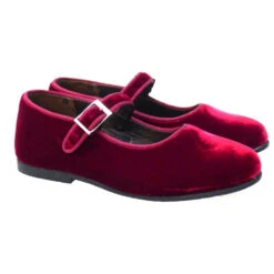 Terciopelo color guinda. Consejos de talla: Calzan el número. Una merceditas para vestir, que podrás combinar tanto con vestidos como con pantalones cortos y leotardos.