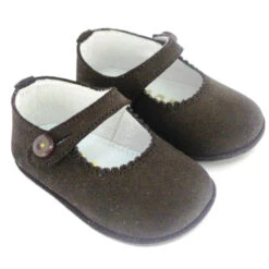 Disponible en diferentes colores, piel ante taupe, piel ante cuero, piel ante gris y piel ante marrón. Consejos de talla: Calzan el número, pero para zapato sin suela se recomiendo no coger el número muy justo. Una badana clásica para bebé muy combinable con todo tipo de vestidos.