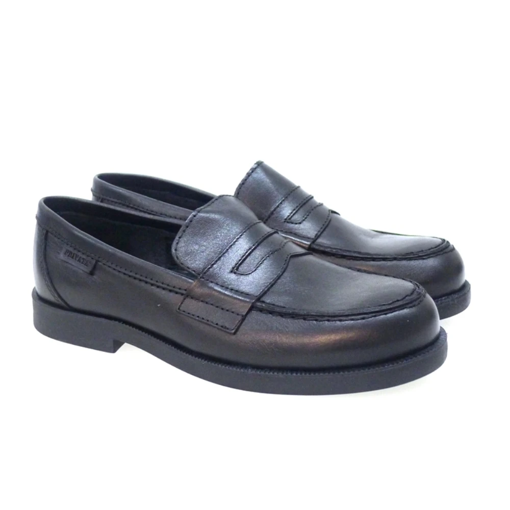Mocasín en napa con antifaz para colegio. Adorno pespuntes realzados en la puntera. Forros y planta en piel. Suela de goma antideslizante.