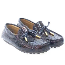 Piel charol coco marrón. Consejos de talla: es recomendable elejir la talla que usa actualmente o incluso una menos ya que talla amplio, además, los mocasines hay que comprarlos justos porque estas pieles ceden con el uso. Un mocasín de niña ideal para pitillos y faldas.