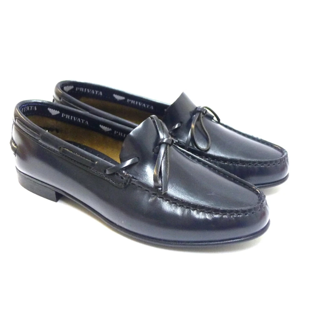 Los mocasines de piel son una opción de zapato colegial para el uniforme. Este diseño lleva de adorno en la pala un lazo en la misma piel, pespuntes decorativos y un cordón alrededor del talón como en los náuticos. El interior es de piel y la suela es de goma fina y antideslizante.