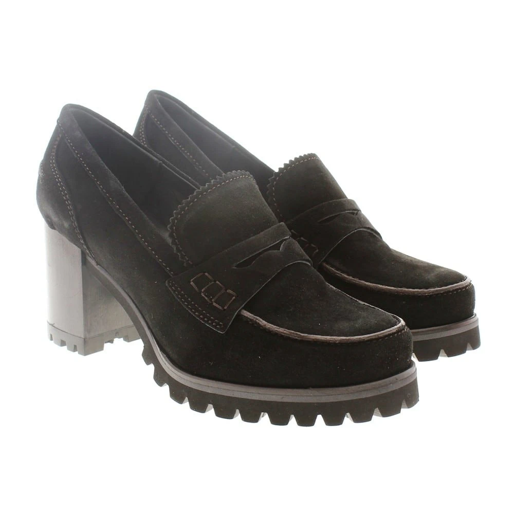 Disponibles en diferentes colores, piel de nobuck verde, piel de nobuck cuero, piel de nobuck negro y piel de nobuck teja. Consejos de talla: Calzan el número. Los mocasines con tacón proporcionan mayor sujeción en el empeine, por lo que son los zapatos perfectos para vestir este invierno. La mejor alternativa a los zapatos de salón y que podrás llevar con unos tejanos o con un vestido.