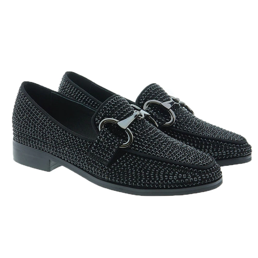 Color negro. Consejos de talla: Calzan el número. Disfruta del estilo y de la comodidad de los zapatos planos con estos mocasines tan ideales cubiertos de brillos. Elige cualquier prenda de tu armario, ya sea un vestido, una falda o un tejano, ya que te servirán para cualquier outfit.