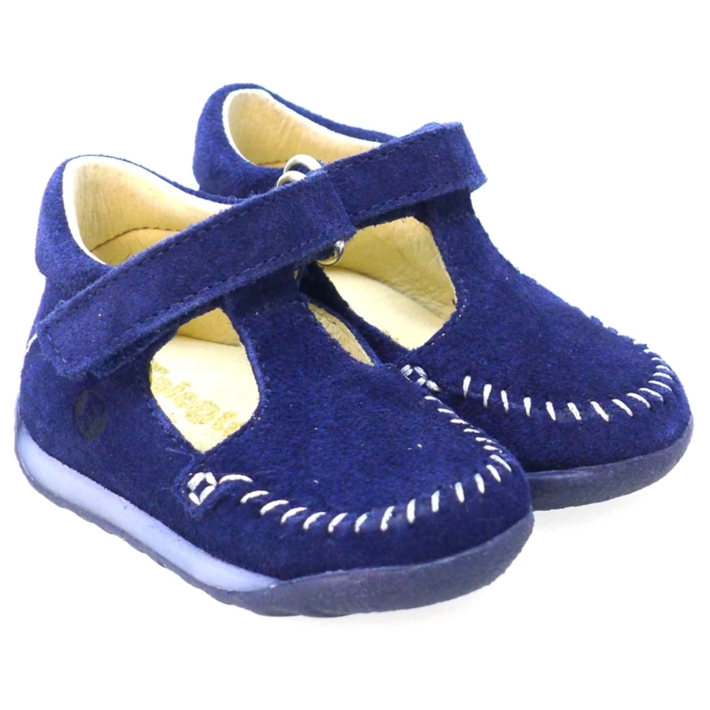 Zapato sandalia para primeros pasos en nobuck de NATURINO. Cierre de velcro, con pespuntes en la pala. Forros y planta en piel con formativo. Suela de goma flexible y antideslizante.