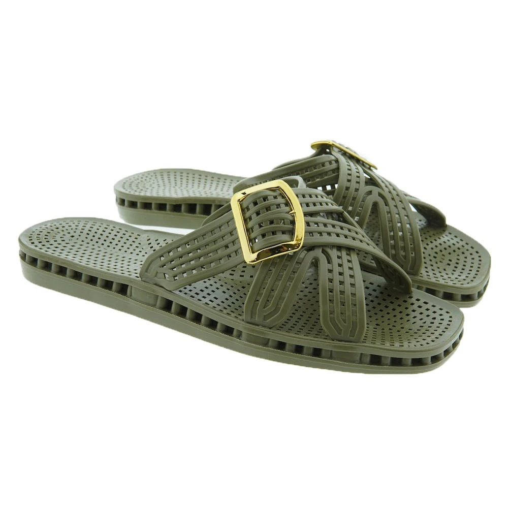 Disponible en diferentes colores kaki, rosa, blanco y oro. Consejos de talla: Calzan el número. Estas sandalias de agua son las más cómodas que llevaremos este verano. No te olvides de ellas en tus vacaciones ya que no te las quitarás en ningún momento.