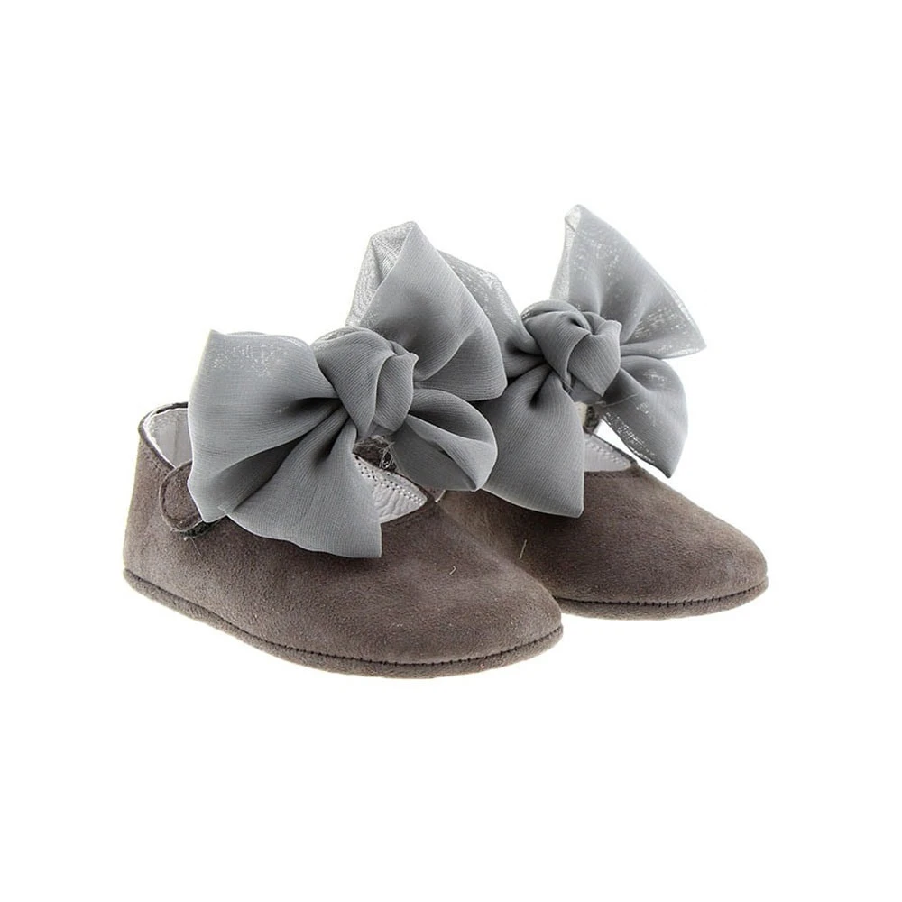 Piel de serraje color gris. Consejos de talla: Calzan el número. Estas merceditas las llevarán este invierno las recién nacidas a juego de sus vestidos y ranitas para el fin de semana o para ocasiones especiales.
