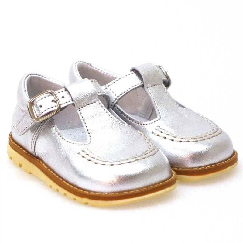 Piel metalizada plata.Consejos de talla: Calzan el número. Este pepito al ser de piel metalizada, lo podrán llevar tanto niños como niñas en época de entretiempo o en verano. Combínalos con vestidos y faldas para ellas y con ranitas para ellos.