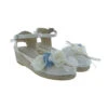 Piel metalizada plata. Consejos de talla: Calzan el número. En primavera ya podrán llevar las niñas sandalias con este modelo de Unisa. Entre sandalia y esparteña este diseño es ideal, ya que llevarán el pie protegido y cómodo y se pueden combinar con bermudas o faldas para diario.