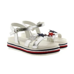 Disponible en diferentes colores, color plata y color blanco. Consejos de talla: Calzan el número. Estas sandalias nos encantan para looks de estilo marinero con azul, blanco y rojo, ya sea con una bermuda o una falda.