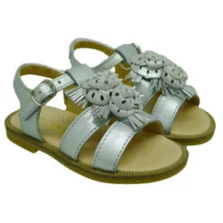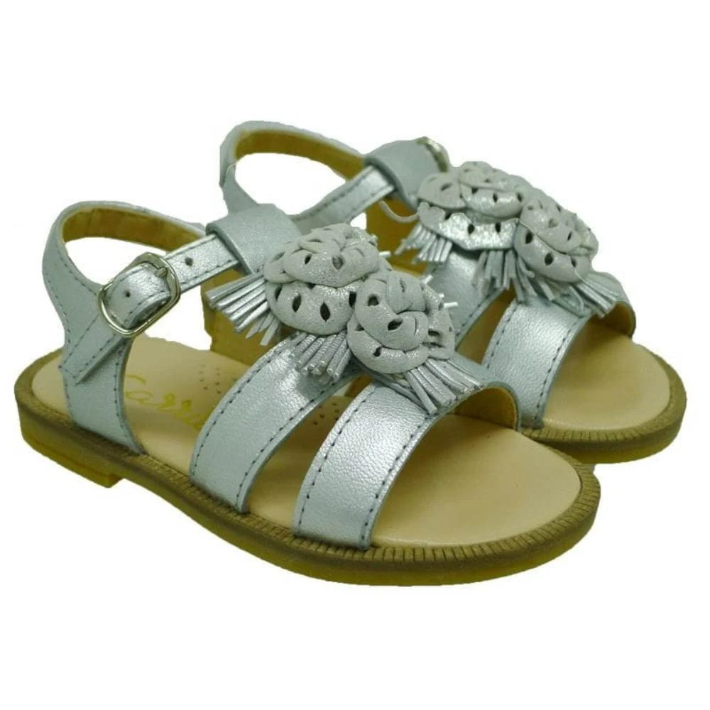 Disponible en diferentes colores, piel metalizada plata, piel metalizada oro y piel napa blanca con flores multicolor. Consejos de talla: Calzan el número. Una colección de sandalias muy ponibles tanto para en ocasiones especiales como en el dÃa a dÃa, con los que las más pequeñas irán muy bien calzadas, con el pie sujeto y fresquito para los dÃas más calurosos del verano.