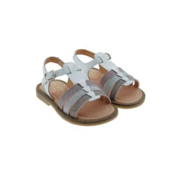 Piel napa blanco combinada con glitter multicolor. Consejos de talla: Calzan el número. Con estas sandalias tu hija pasará el verano, bien calzado y combinándolas con cualquier conjunto de su vestuario. Una sandalia muy fácil de llevar y sobre todo cómoda para las niñas más pequeñas.